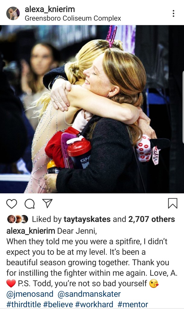 Jenni Meno appeared in the “Kiss and Cry” area as the coach for the Gold and Silver medalists in the Championship Pairs event. Jenni started skating with CFSC at the OSU rink and was a Juvenile Lady when her family moved to Cleveland to work with coach Carol Heiss Jenkins, a Gold Medal Olympian. Eventually she started training for pair skating. Her career included many important events with Todd Sand – the 1994 and 1998 Olympics, six World Competitions with two 3rd places and two 2nd places, and five Nationals with two 2nd places and three 1st places.